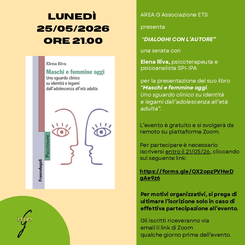 “Dialoghi con l’autore” – Presentazione del libro “Maschi e femmine oggi. Uno sguardo clinico su identità e legami dall’adolescenza all’età adulta”, di Elena Riva