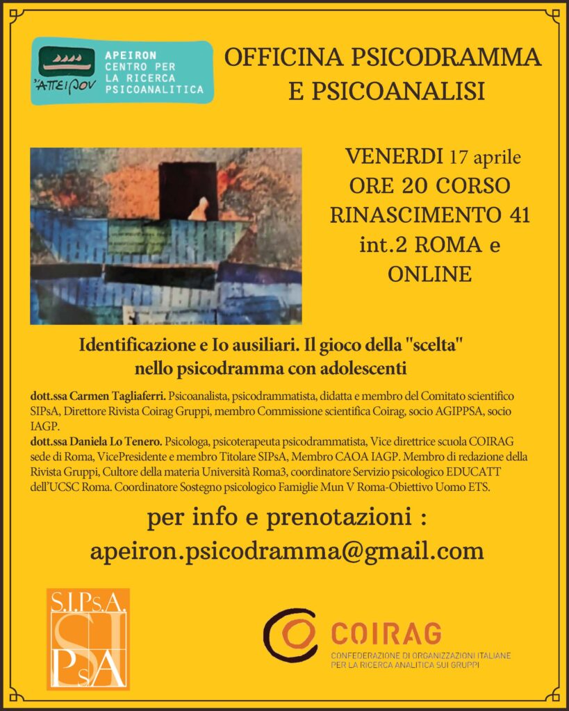 Officina Psicodramma e Psicoanalisi – Identificazione e Io ausiliari. Il gioco della “scelta” nello psicodramma con adolescenti